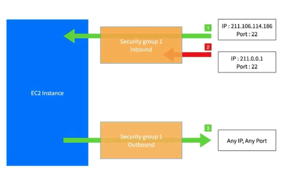 - 인바운드 규칙으로 혀용된 IP 혹은 Port가 아니라면 접근할 수 없다.